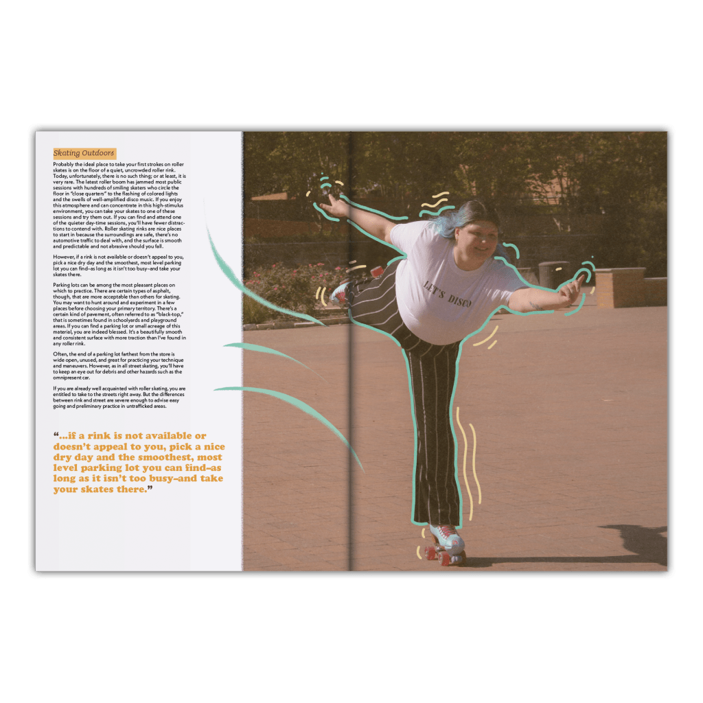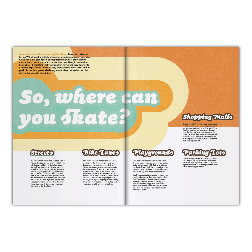 Frank Simcoe’s The Official Guide to Outdoor Skating redesigned with a modern retro aesthetic popular with today’s roller skaters. Not only was the goal to be aesthetically pleasing and fun, but also to be an instructional guide for beginners.